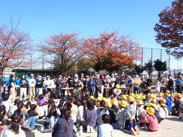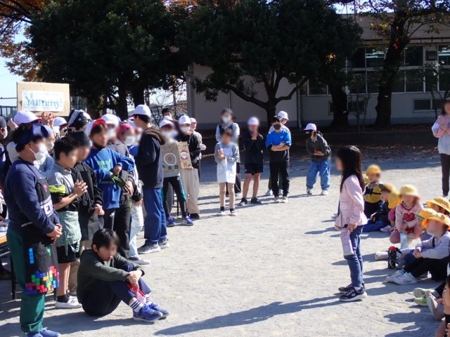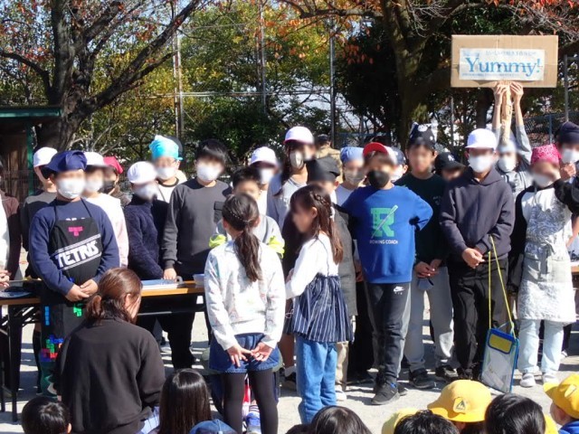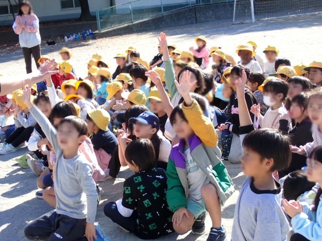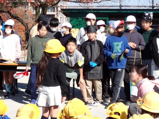 焼き芋を食べた後は、6年生と1.2年生とで向かい合って、1.2年生から、感想やお礼を伝えました。気持ちを伝えたくて思い切り手を挙げる子たちがいたのが、大成功の証拠です。とっても心温まるエンディングでした。