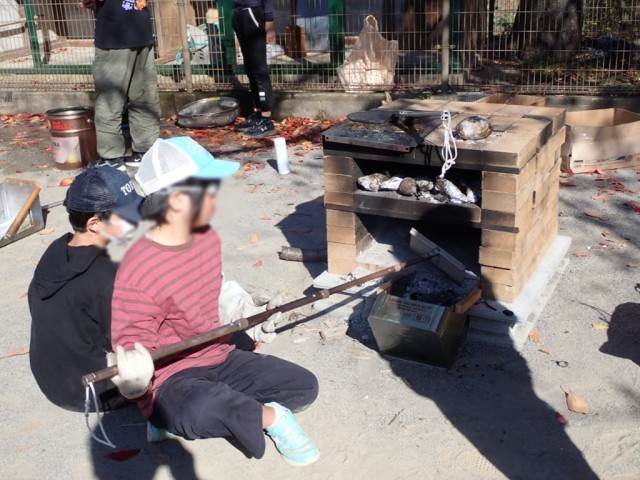 ピザの後は、2年生が持ってきてくれた焼き芋タイム!