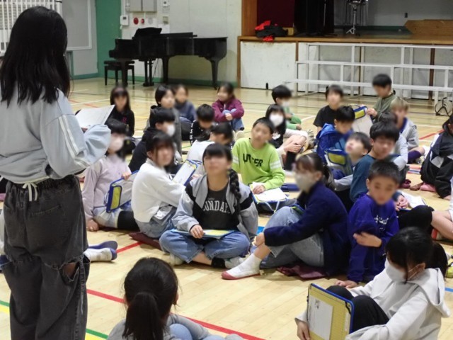 5年生は、学年全体で「ブランコ乗りとピエロ」という読み物を使いました。