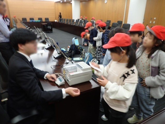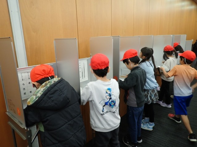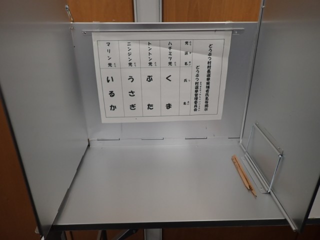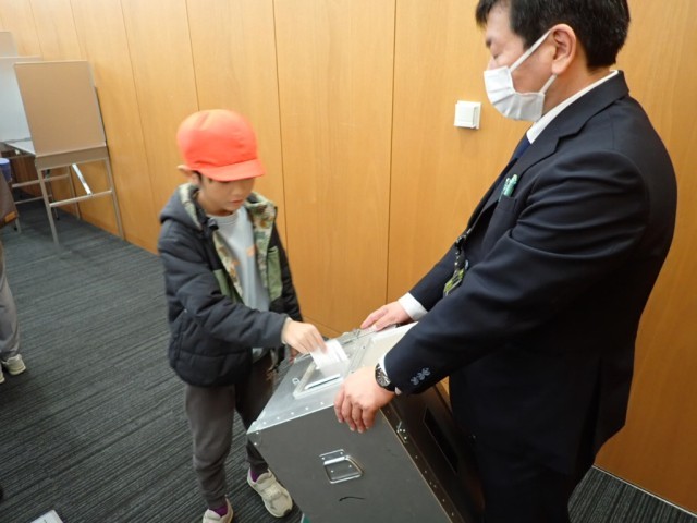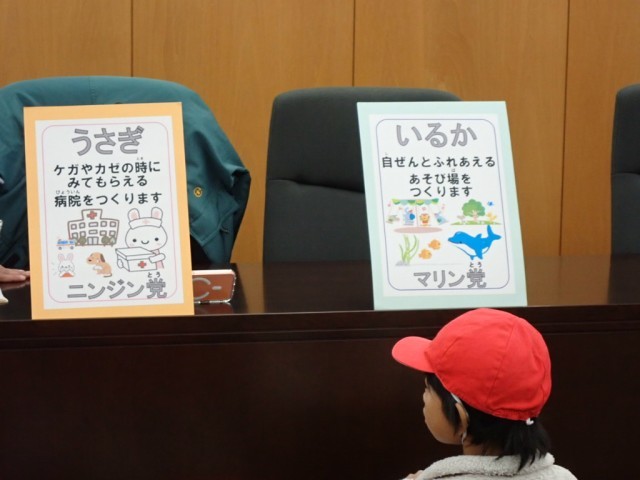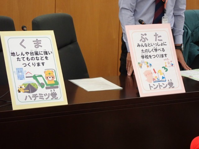 4つの党の主張を聞いて、本物の選挙用紙を使って投票をしました。