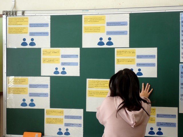 英語スピーチは、サンプルを参考にしながら構成を考えていました。難しそうですが、頑張っています。