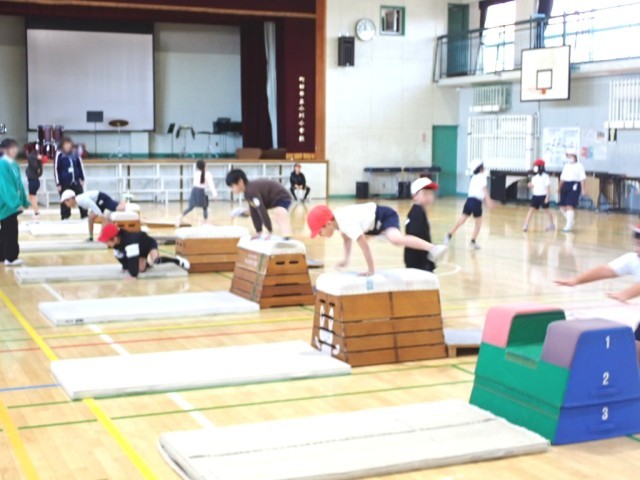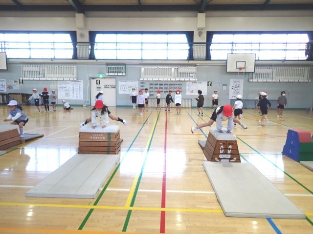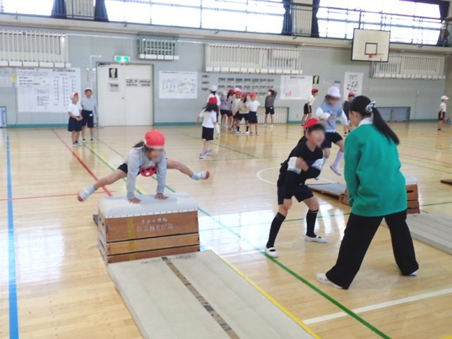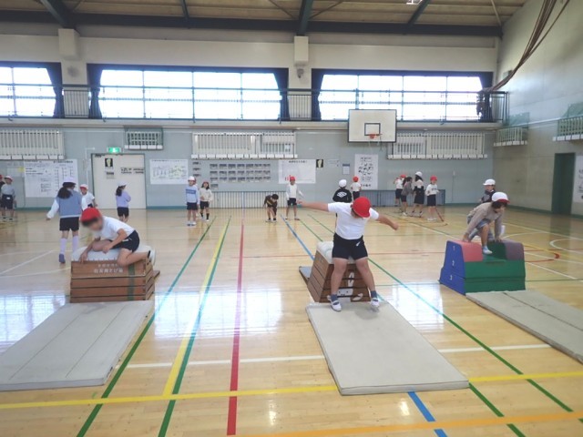 抱え込み跳び、開脚跳び(跳び箱縦ver.横ver.)など、自分の課題に合わせて様々な跳び方に挑戦していました。
