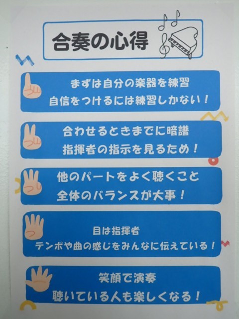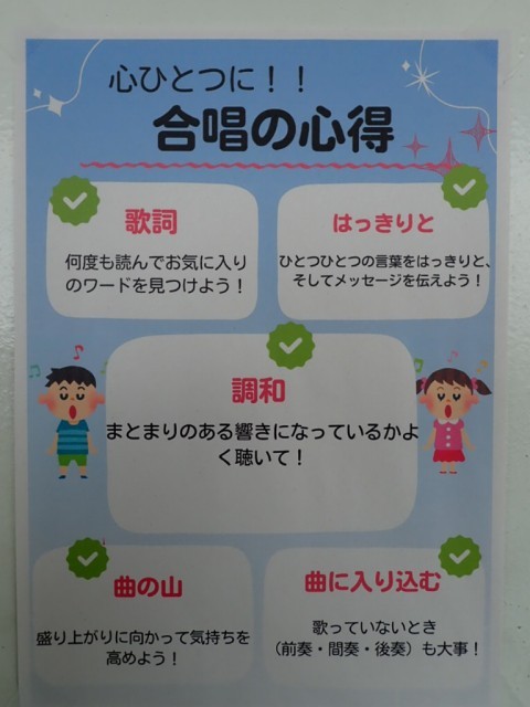 音楽室の前には、こんな「めあて」や「心得」が貼ってあります。