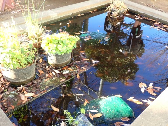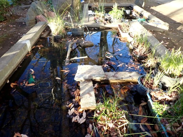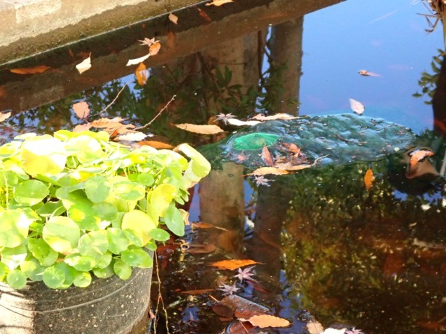 この1年間でも、様々な変化がありました。何かの拍子に水が抜けてしまったり、小さな水草がビッシリ水面を埋めてしまったり、水が真っ黒になったり、入れたはずのない白いメダカが繁殖していたり。