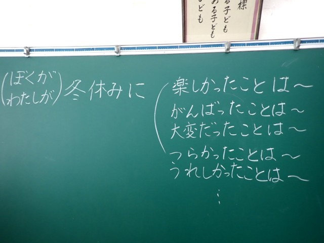 教室に行ったら、ちょうど全員の「冬休みの話」が終わったところで、私も話をすることになってしまいました。