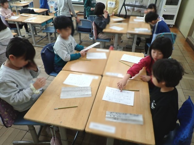 みんな、とっても丁寧に書いて、素晴らしい作品になりました。書き終えた後は、グループで作品を見せ合い、いいところを探し合っていました。
