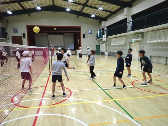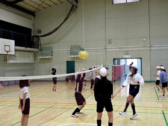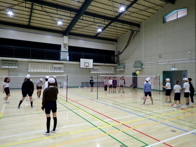 校庭ではティーボール、体育館ではソフトバレーボールをしているんですね。