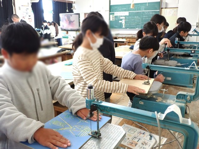 家庭科でちょうど「ミシン」を学習していたせいか、みんな慣れた手つきで切り進めていました。