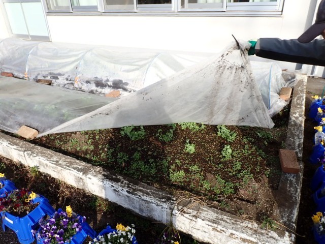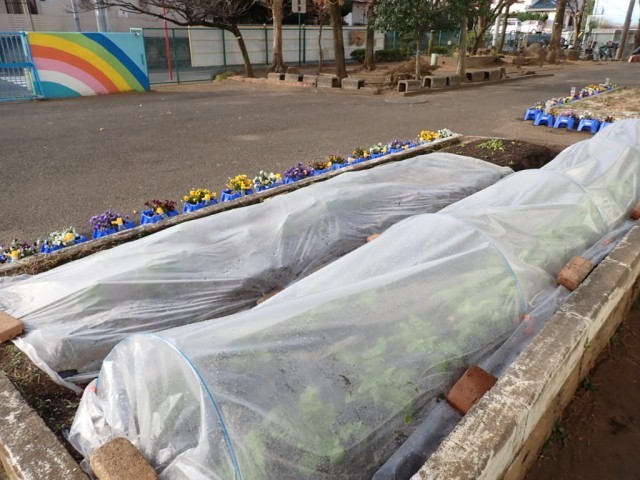 校門前にも様々な野菜を植えて育ててくれています。早く食べたい!