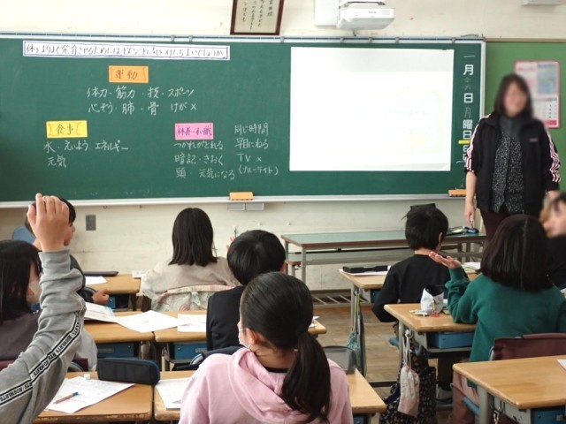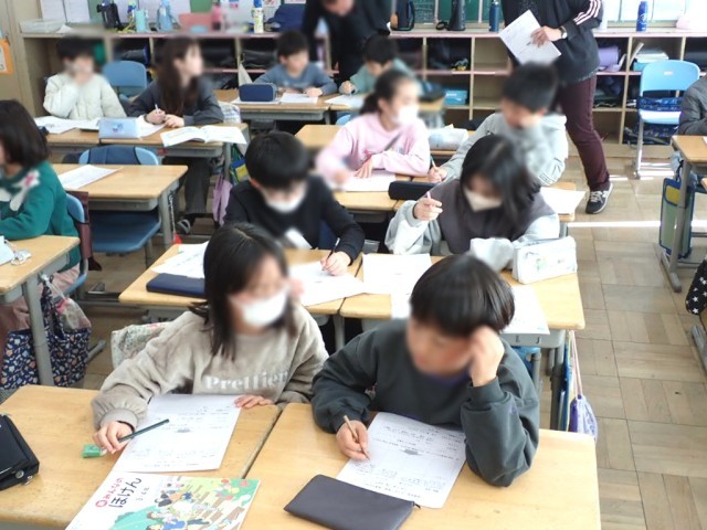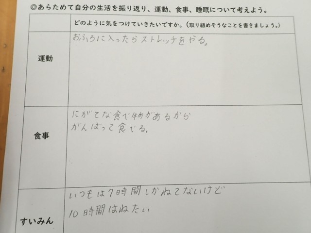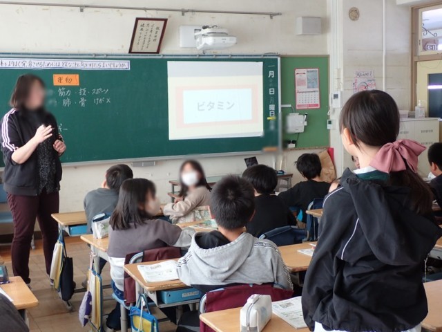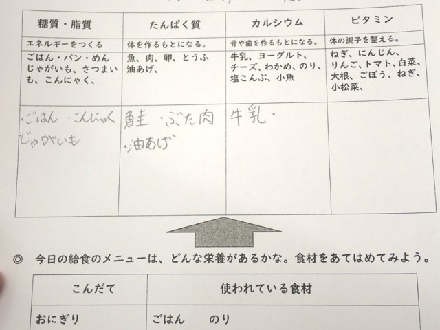 今日の給食で使っている食材を、「糖質・脂質」「たんぱく質」「カルシウム」「ビタミン」に分類するワークでは、給食の栄養バランスのよさに気付いていました。本当に、給食ってありがたいですよね!