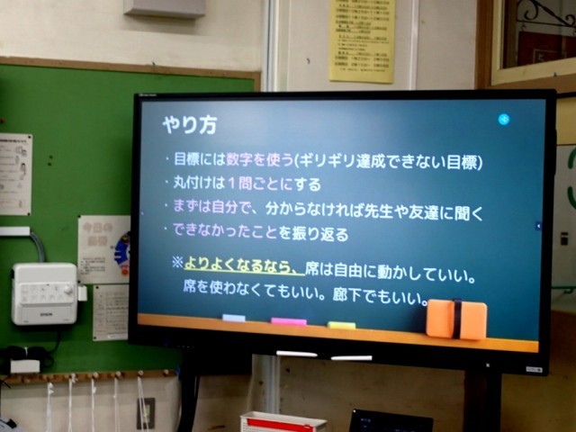 ミニレッスンや長めの一斉指導も加え、自由進度学習とのベストバランスを考えながら進めています。