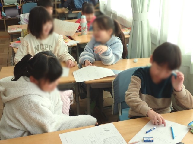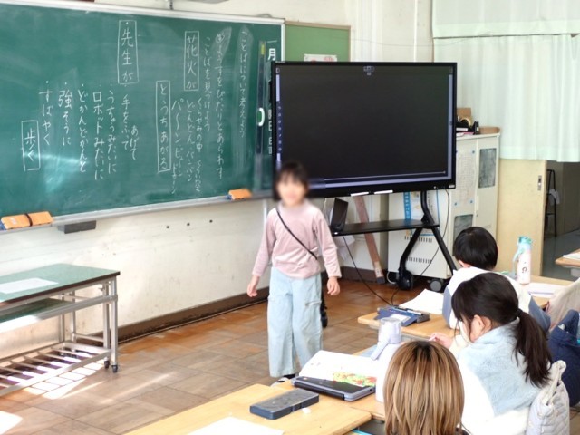 先生の歩く様子にぴったりな言葉を考える等、とっても楽しく学んでいました。