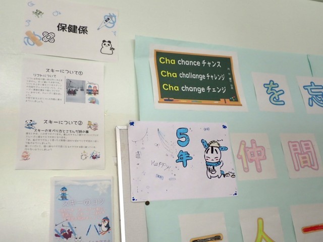 事前学習では、川上村やスキーについて調べ、掲示物を作る学習をしていました。
