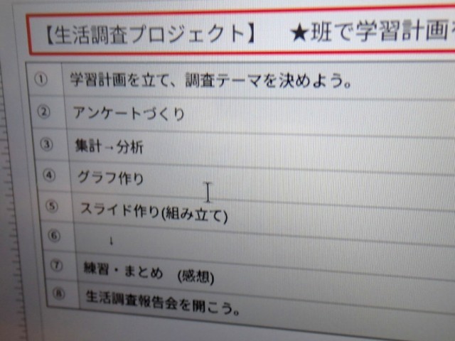 自分たちの身近な生活から、調べてみたいことを決めて調査を行い、分析して、報告会を開くそうです。