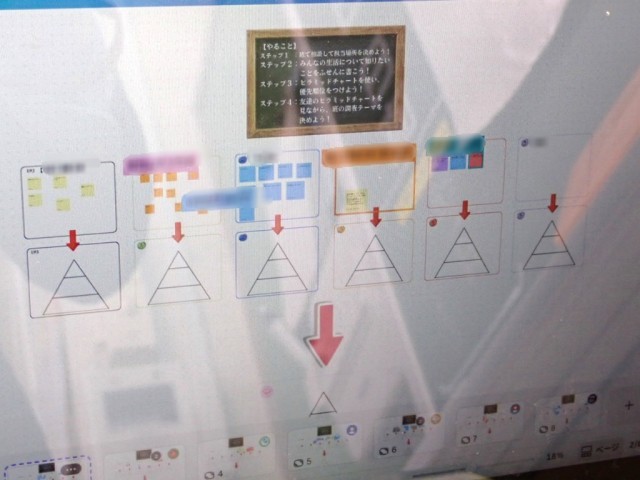 その後は、各自で調べたいことのアイデア出し。chromebook上でデジタル付箋紙を使ったり、ピラミッドチャートに整理したりしていました。