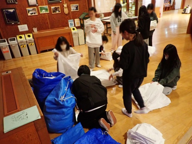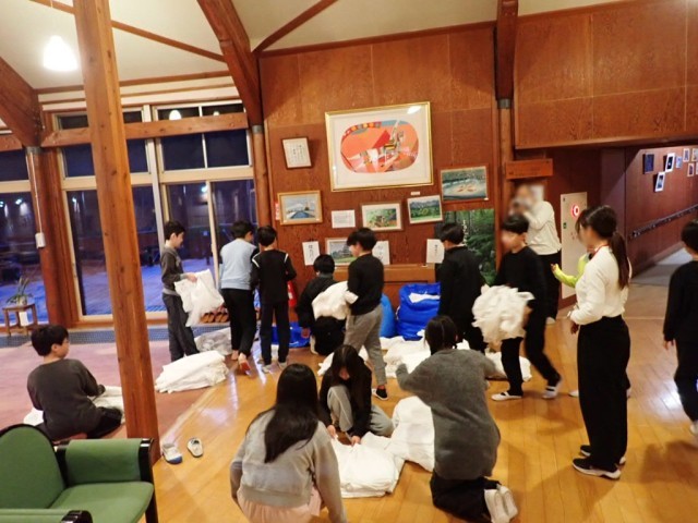 40秒ではなく「20分で準備しな!」ということで、シーツをたたんで、6:30から朝の会をしました。
