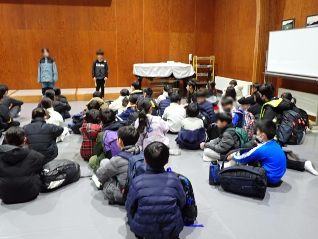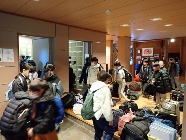 荷物をバスに運び込んで、閉村式をしました。宿舎の方からも、とってもきれいに丁寧に使ってくれたと褒めていただき、校長としてとっても誇らしかったです。