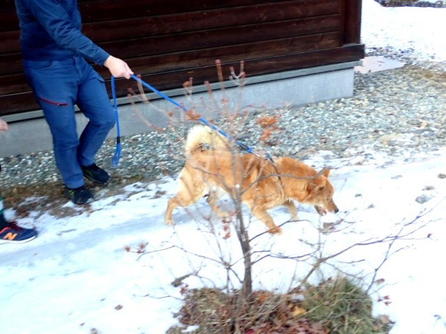 出発前には、川上犬のゲンくんと少しだけコミュニケーションを取りました。恥ずかしがり屋さんのようでした。