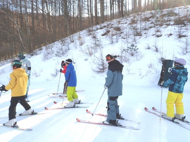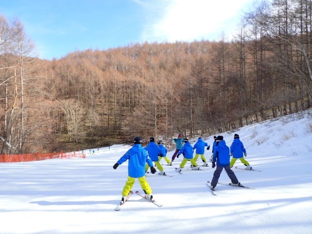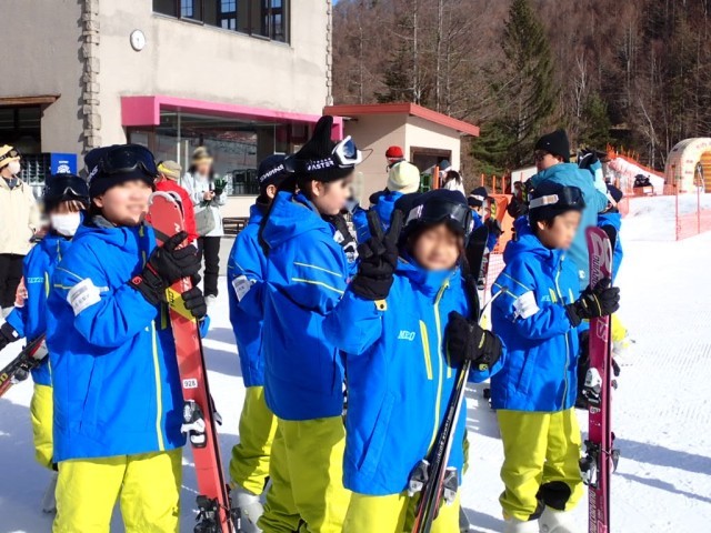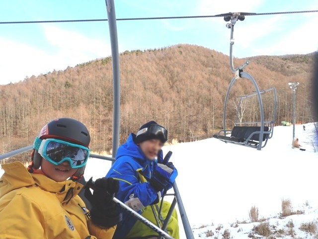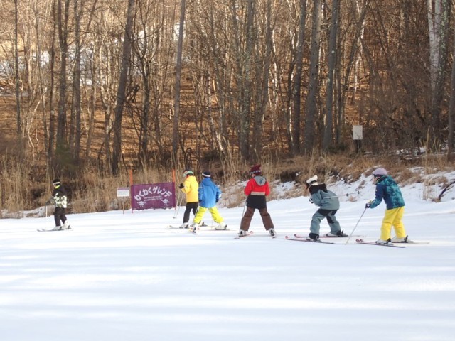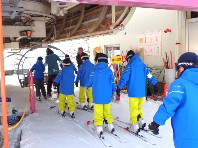今日はどのチームもリフトに乗って、初心者コースへ!