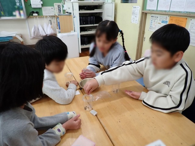 カップに10個ずつ種を入れる工夫に気付けるかどうか。