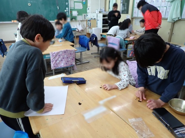 様々な数え方で、班の仲間と協力して、約50個ほどの種を数えることができました。