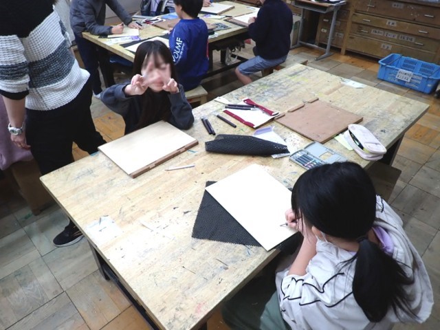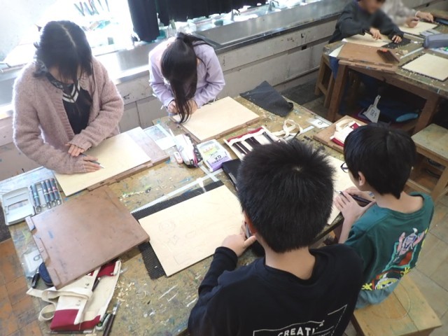 ギザギザ、クネクネの線を彫ったり、◯に挑戦したりして、まずは慣れる練習をしていました。