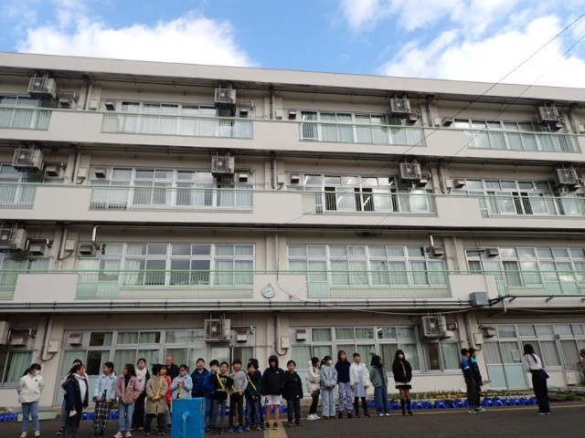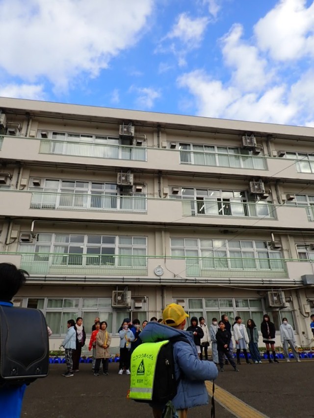 【全体】朝の挨拶が響く前庭
