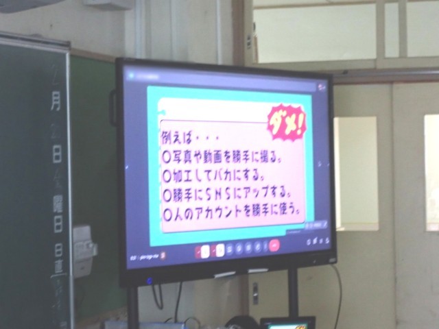 小学生では、SNSに投稿する、ということはあまりありませんが、chromebookで人の写真を撮ってその画像にいたずらしたり、許可もなく動画を撮ったりすることは、あり得ます。そのようなことも、絶対にすべきではないことを指導しました。