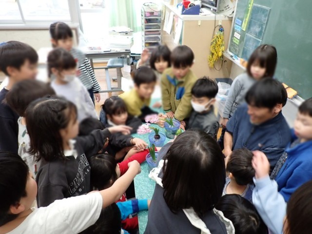 みんなでギュッと集まって、楽しそうに話し合っていました。