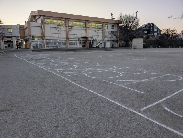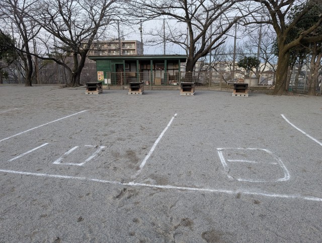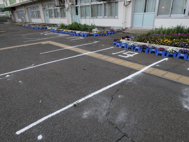 今日の放課後、教職員らで、お祭りに向けてライン引きやその他諸々の準備をしました。