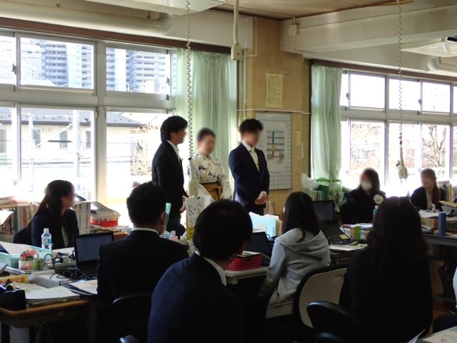 朝の打合せで、6年担任から挨拶。