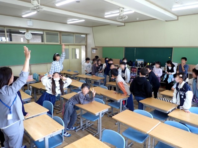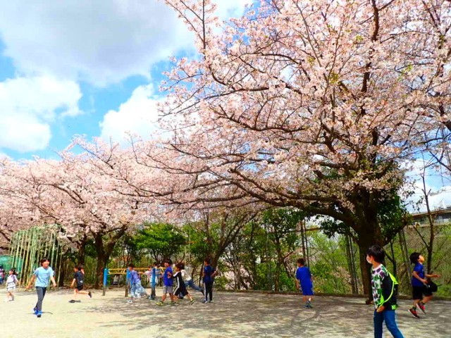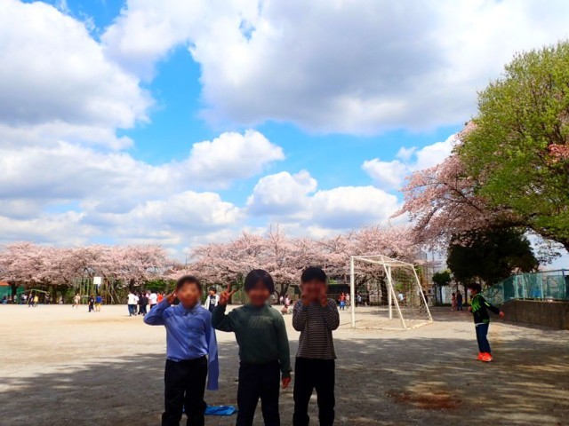 休み時間は気持ちのいい天気で、たくさんの子が校庭でのびのび遊んでいました。