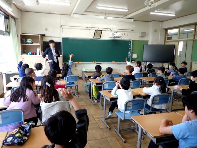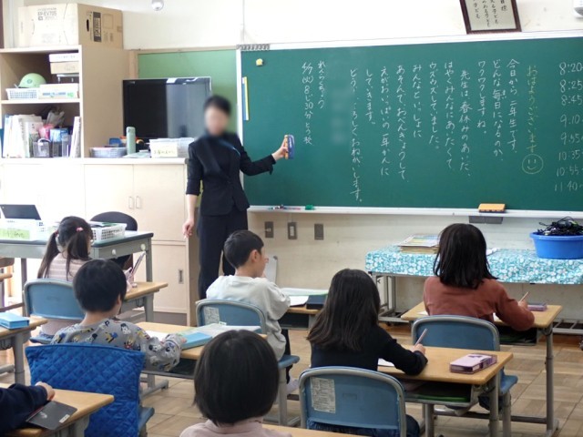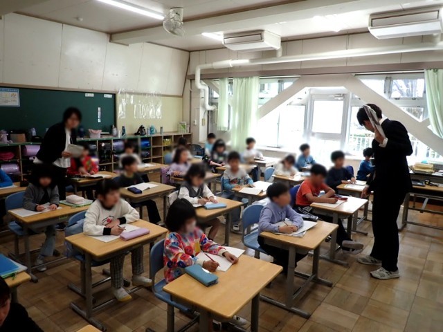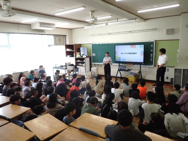 教室では、たくさんのプリント配り、先生や子どもたち同士の自己紹介、誕生日にまつわるゲーム、学年集会などをしていました。