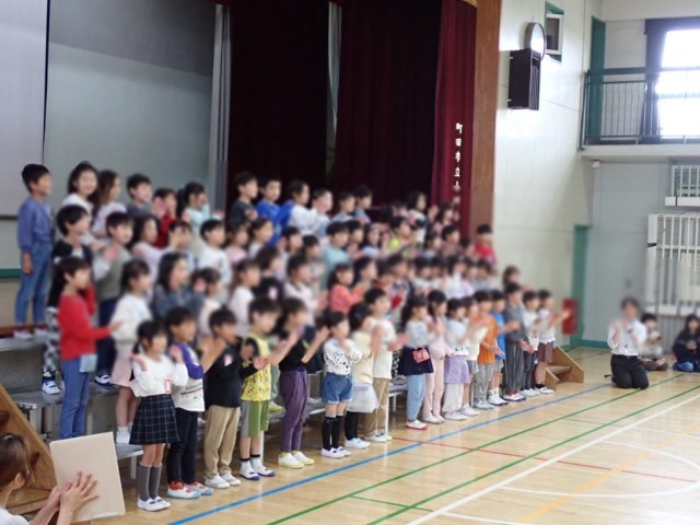1年生は、「おもちゃのチャチャチャ」小川小替え歌バージョンを歌ってくれました。