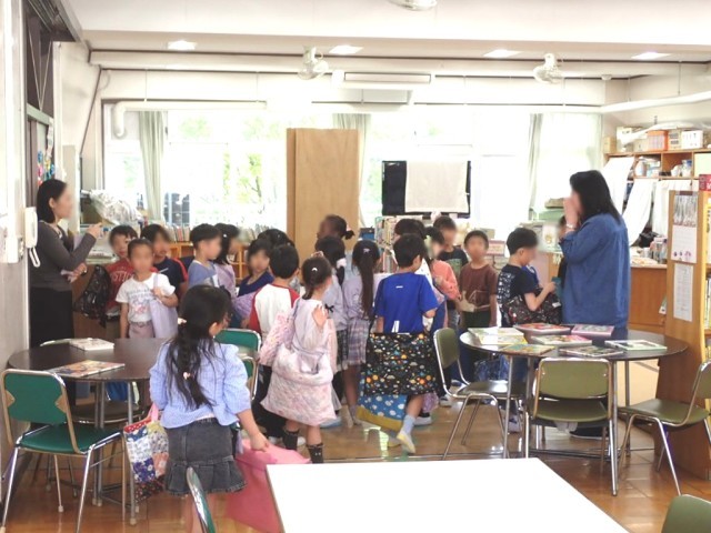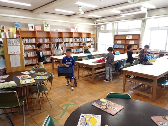図書室に行ったら、ちょうど本を借りて教室に戻るところでした。