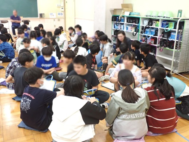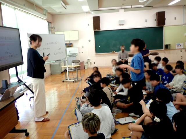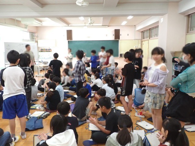 近くの仲間で話し合い、たくさんのゴール案が出ました。幕明さん、マルイグループの方も、こどもたちの考える力に驚いてていました!
