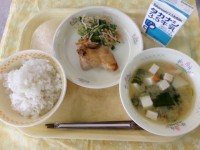 生揚げと豚肉のみそ炒め丼、沢煮椀、大学芋、牛乳