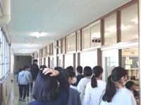 OSFで使ったハチマキを回収する際、縦割り班で集合しました。