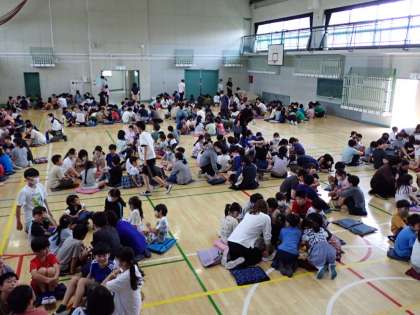 ようやく、1年生を含めた全校縦割り班での全校ミーティングができました。