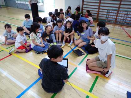 朝、Meetで全校児童に