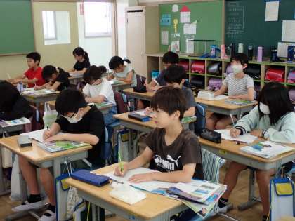 気分は夏休み!?かと思いきや、こどもたちはそんなことなく、良い姿勢で学習しています。
