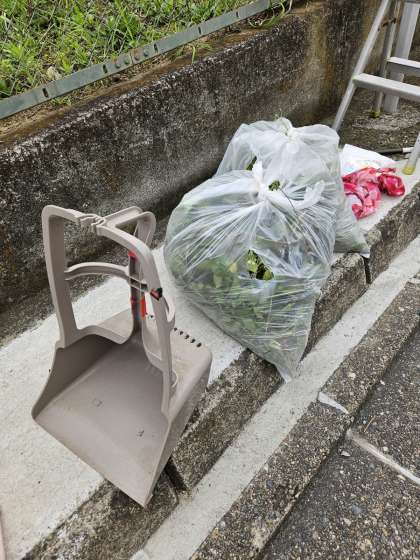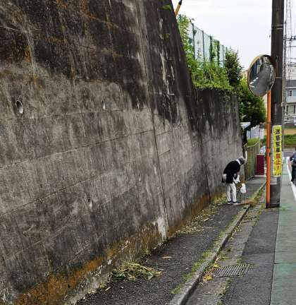 放課後、本校敷地に沿った坂道にて、雑草を抜いている方々がいらっしゃいました。