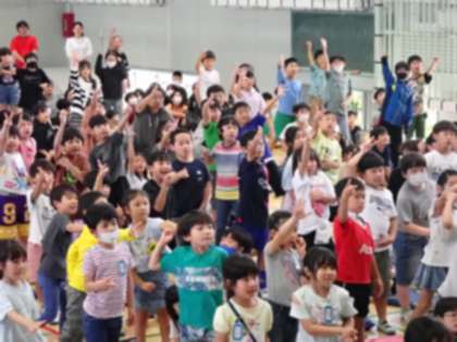 全校児童が体育館に集まり、集会委員さんとジャンケンをしました。