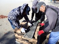 せっかくなので、正門の両脇、フェンスに沿って、ひまわりを咲かせることにしました。