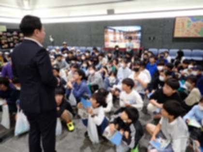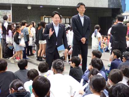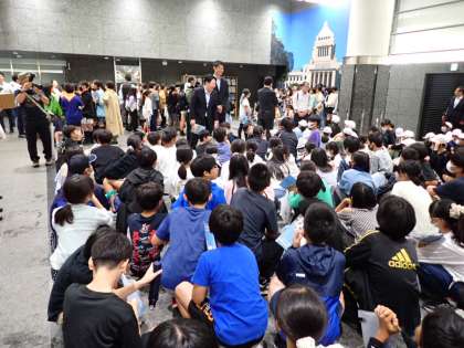 参議院議員の小倉將信さん(町田市出身)と、朝日健太郎さんから、国会の役割、選挙の大切さについてお話をいただきました。