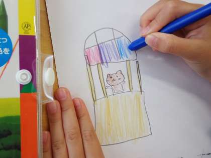 自分の好きな動物や文具、食べ物などで、たし算の本を作っていました。