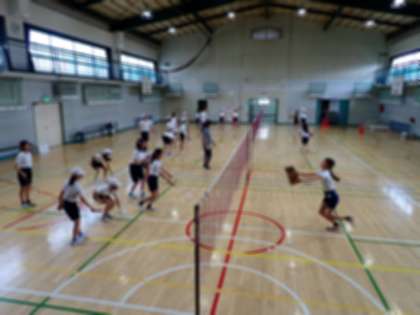 バドミントンクラブでは、「段ボールの箱にうまくシャトルを入れられるか」ゲーム。
