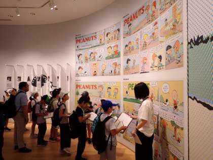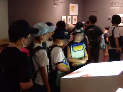 壁面のマンガから、必要な情報を見つけてワークシートに書き込んでいます。