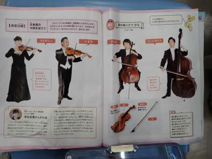 オーケストラを聴いて、楽器の音色を聴き分ける学習をしていました。