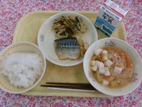 麦ご飯、イタリアン肉じゃが、ししゃものから揚げ、キャベツとコーンのサラダ、牛乳